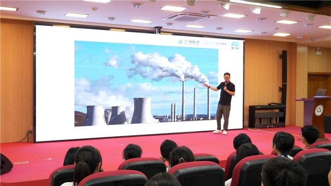随后协办单位邀请的海南国际碳排放权交易中心市场发展部总监刘亮老师为同学们带来了一场生动有趣的低碳知识讲座,通过对气候变化和温室效应等一系列概念深入浅出的讲解,结合图片、动画演示以及同学们生活日常,让同学们进一步的对温室气体、发电厂、化工厂、钢铁厂等平时课堂里很少接触到的知识有了一定的认识,也让低碳种子在同学们心里埋下种子。同学们积极参与,踊跃举手,最具亮点的是低碳知识问答环节,在轻松活泼的氛围当中,同学们通过抢答,进一步加深了对低碳相关知识的理解,同时也大大激发了他们践行低碳环保生活方式的热情。