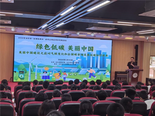 2024年5月15日是“全国低碳日”,今年的主题是“绿色低碳 美丽中国”,在这一天,汕头金中华侨试验区学校成功举办了一场以“美丽中国建设之应对气候变化和全国碳市场发展”为主题的低碳知识讲座。